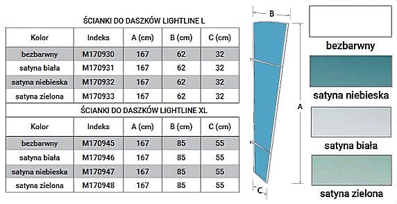 DOSTĘPNE WYMIARY ŚCIANEK LIGHTLINE: