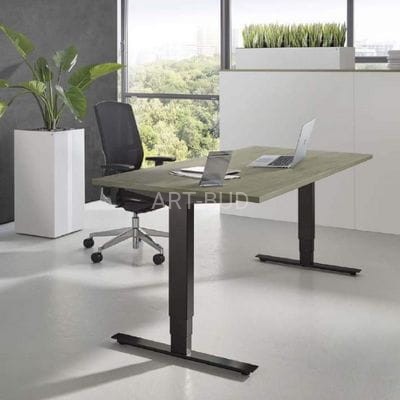 Najwyższej jakości biurko z elektrycznie regulowaną wysokością. Zastosowanie stojąco-siedzącego stanowiska pracy poprawia kondycję zdrowotną i zmniejsza liczbę zachorowań. Wygodnie zmieniaj pozycję pracy za pomocą elektrycznej regulacji wysokości