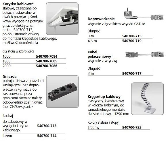 Podana cena podstawowa dotyczy biurka kod 540490-1.1 o wymiarach 1600x800x625-1285 mm z tabelki poniżej. Pozostałe modele na zapytanie.