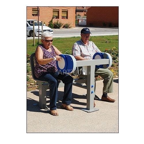 Dwustanowiskowe urządzenie służące do wzmacniania ramion. Ćwiczenie polega na wykonywaniu obrotów oburącz w pozycji siedzącej. Rekomendowane przez rehabilitantów oraz fizjoterapeutów. Urządzenie posiada certyfikat, potwierdzający zgodność z normą EN 16630:2015. Certyfikat musi być ważny na dzień składania ofert. Przedstawiony rysunek produktu stanowi integralną część opisu – produkt musi być zgodny z przedstawionym wyglądem.