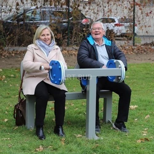Siłownia plenerowa dla seniorów zestaw podwójny ławka z młynkiem