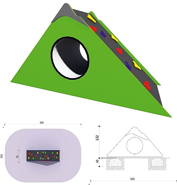 Skałka z tunelem to bardzo popularne urządzenie na plac zabaw dla dzieci. Składa się z dwustronnej pochylni wspinaczkowej wewnątrz której znajduje się tunel. Urządzenie kształtuje koordynację ruchową i zmysł równowagi. Charakteryzuje się najwyższą jakością i poziomem wykończenia a jednocześnie dbałością o zapewnienie maksymalnego bezpieczeństwa. Renomowany polski producent gwarantuje stosowne certyfikaty na swoje urządzenia, polskie i europejskie. Urządzenie zgodne z normą PN-EN 1176.
