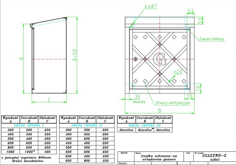 Skrzynka gazowa Wrocławska zewnętrzna zawieszana SGAZZWR-Z lub wnękowa SGAZZWR-W