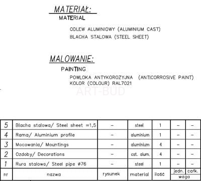 Kolor standard wg palety RAL 7021(czarno-szary) lub 9005(czarny)