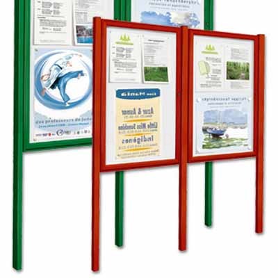 Dwa słupki podłużne 60 x 40 aluminiowe, zatyczki z aluminium czarne, uniwersalny system mocowania na tylne jścianie gabloty „TRADITION” na kotwie z inoxu, wykończenie anodowane srebrne lub malowane w kolorach RAL (czerwony 2002, zielony 6005, niebieski 5010, brązowy 8017). Montaż przez umocowanie bezpośrednie do podłoża (wysokość maksymalna 2600 mm) lub na płytki (wysokość maksymalna 2200