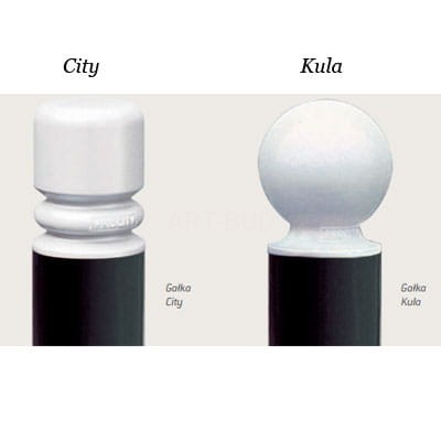 - Gałka: odlana z aluminium, przyspawana do głównej konstrukcji słupka. Do wyboru dwa rodzaje gałek.