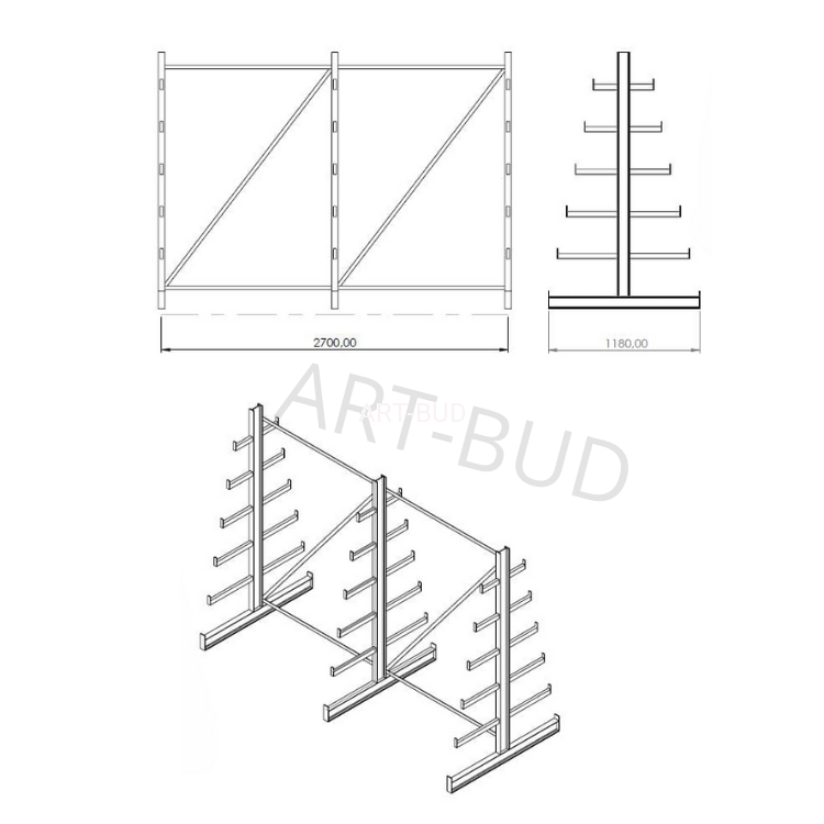 Typ: Regał wspornikowy spawany – dwustronny, choinkowy