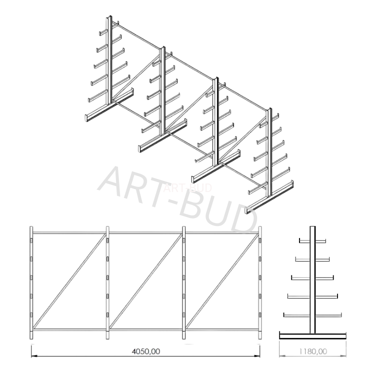 Przeznaczony do przechowywania materiałów ciężkich i długich (rurki, listwy, płyty itp.)