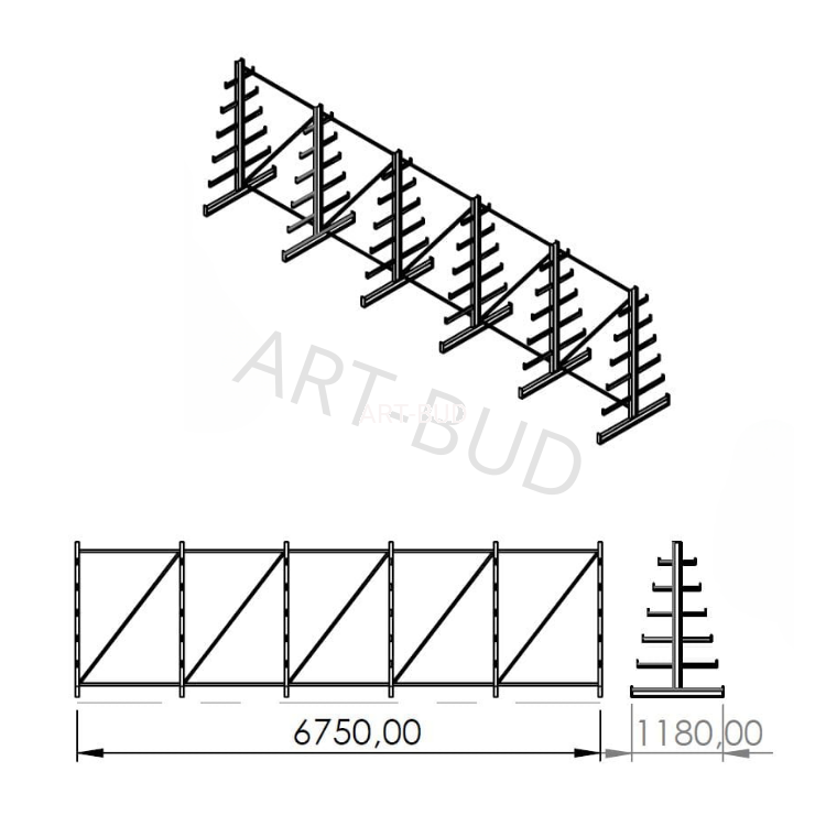 W 100% Polski Produkt – Regał Wspornikowy Dwustronny 2000x6750x635 mm