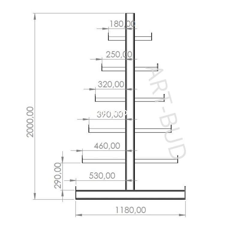 Typ: Regał wspornikowy spawany – dwustronny, choinkowy