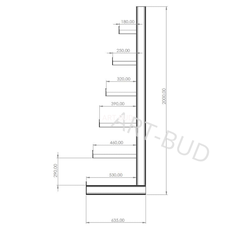 Typ: Regał wspornikowy spawany – jednostronny, choinkowy