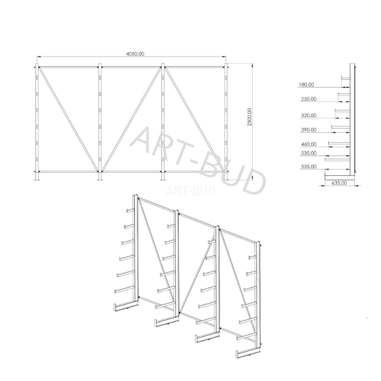 - wykorzystywane głównie do przechowywania materiałów ciężkich i długich, takich jak rurki, listwy, płyty, itp.