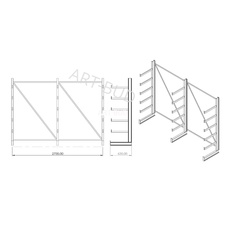 Spawany regał wspornikowy równoramienny jednostronny 2000x2700x635mm