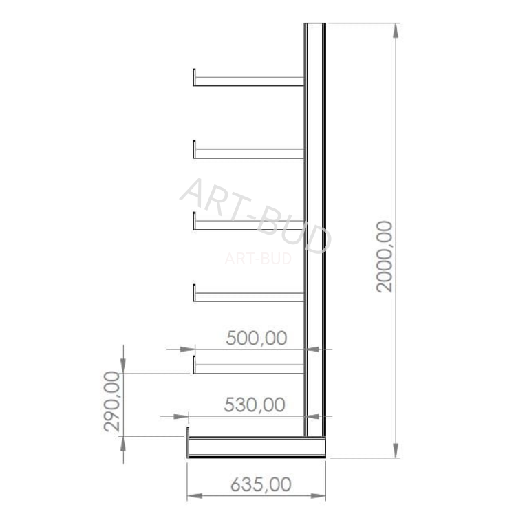 Typ: Regał wspornikowy spawany – równoramienny, jednostronny