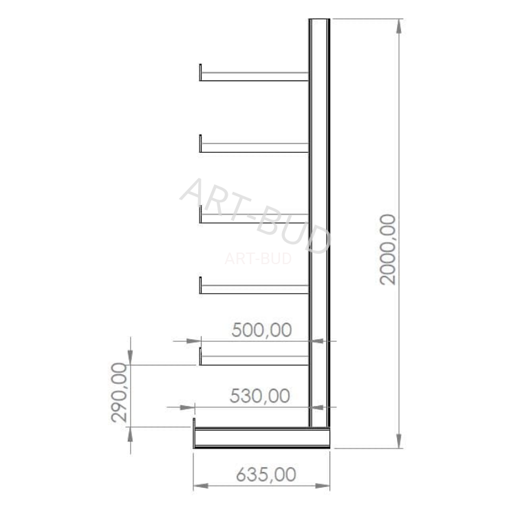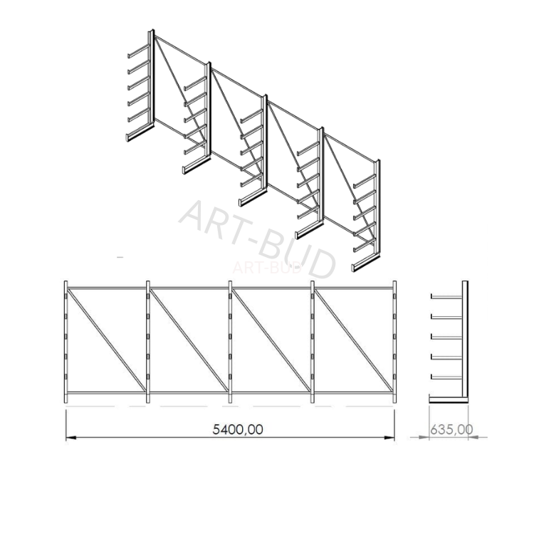 Spawany regał wspornikowy równoramienny jednostronny 2000x5400x635mm