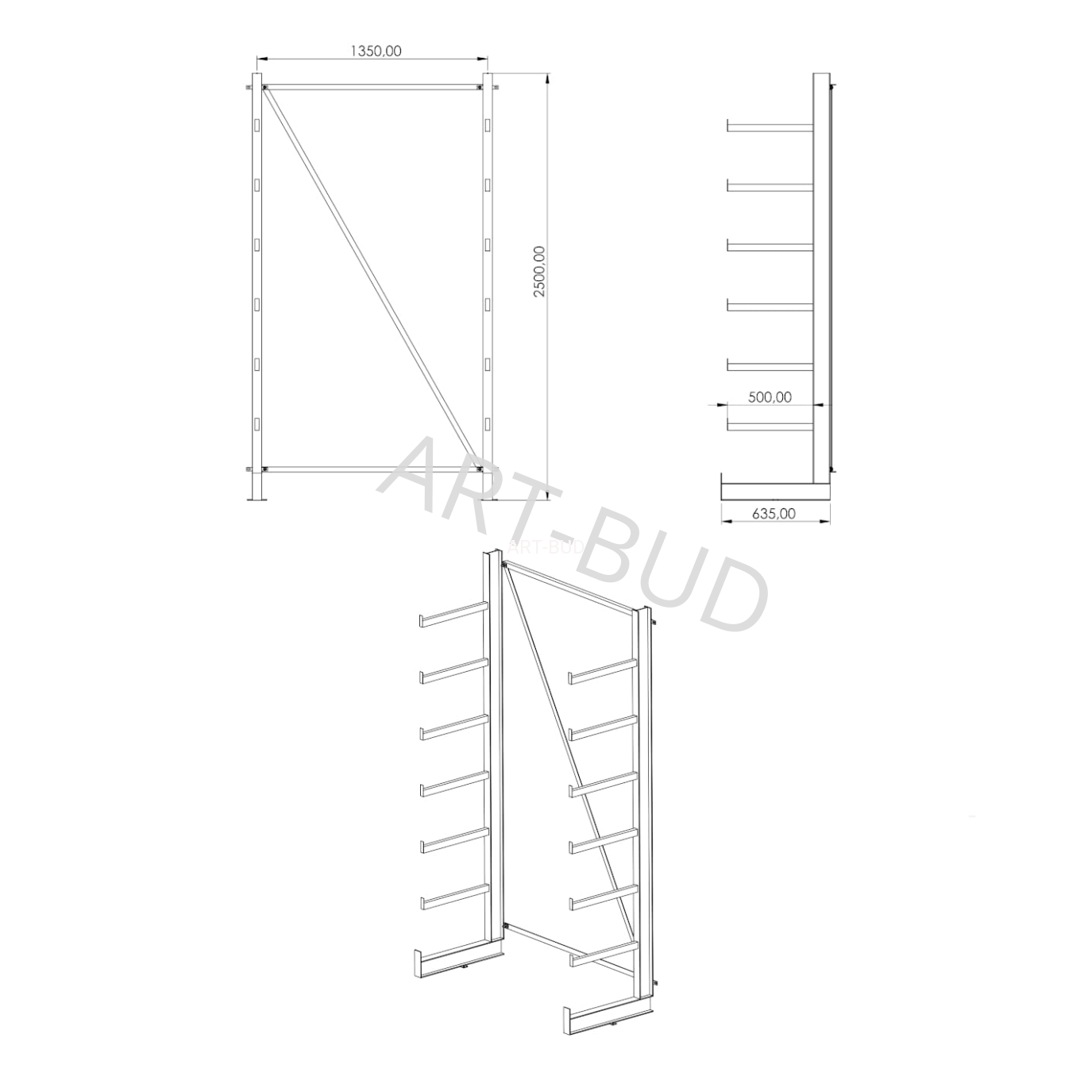 Spawany regał wspornikowy równoramienny jednostronny 2500x1350x635mm