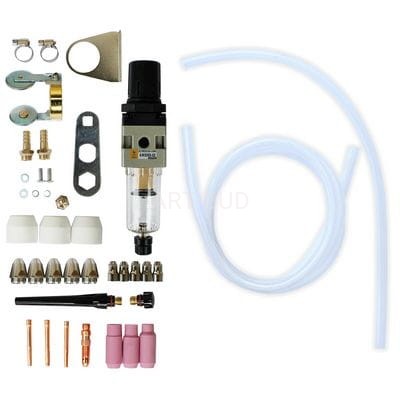- spawarkę Welder Fantasy NOVEL 200 IGBT, - uchwyt TIG SRT 26-4m, - uchwyt masowy 3m, - uchwyt elektrodowy 3m, - uchwyt plazmowy P80-4m, - dodatkowe elementy eksploatacyjne (dysze, łączniki, tulejki, elektrody), - wózek do palnika plazmowego, - filtro-reduktor sprężonego powietrza, - instrukcję obsługi i kartę gwarancyjną. |