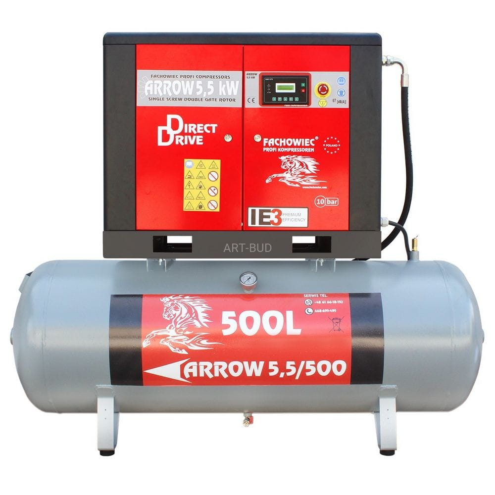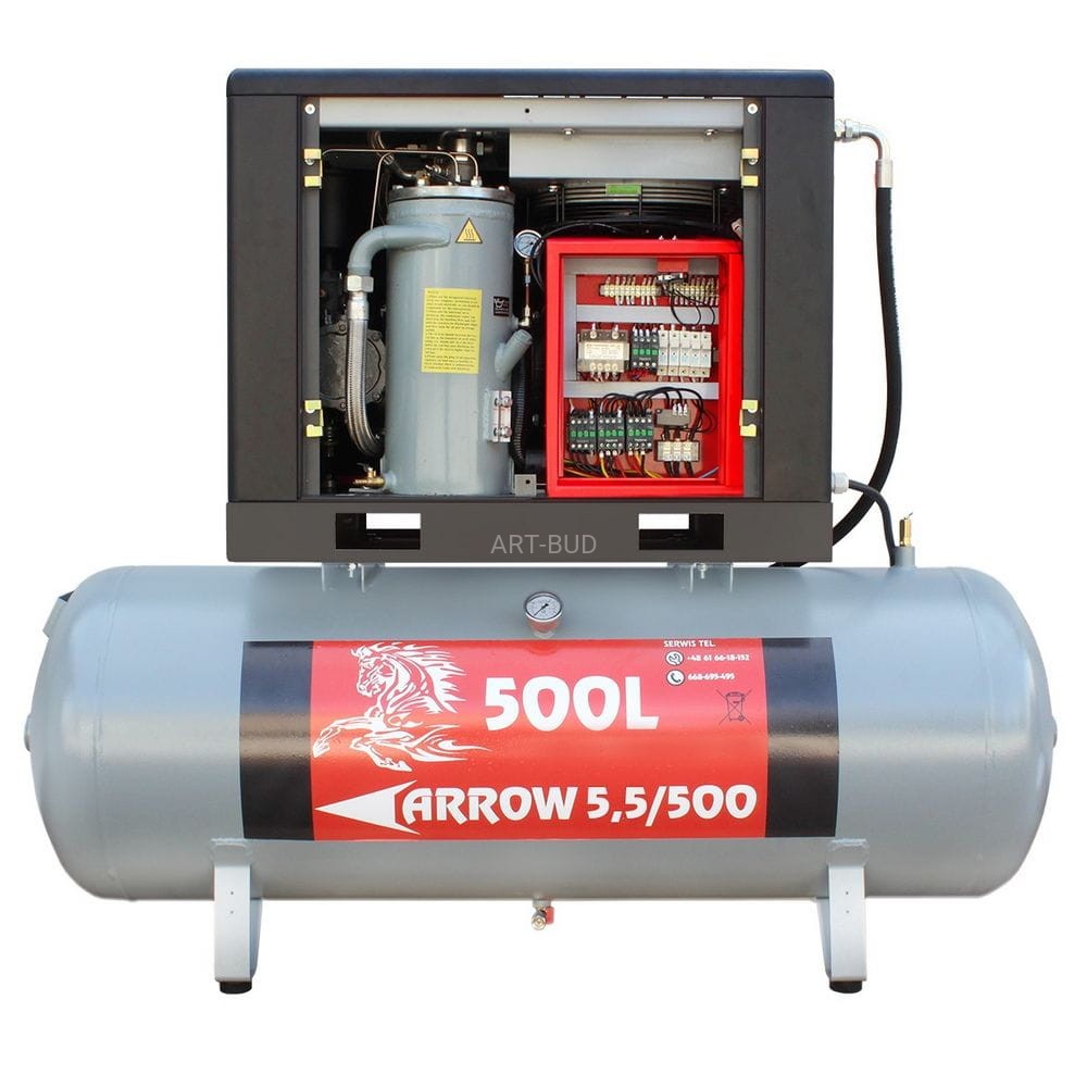 Sprężarka śrubowa Profi Kompressoren ARROW 5.5kW-7,5kW/500L zestaw na zbiorniku poziomym
