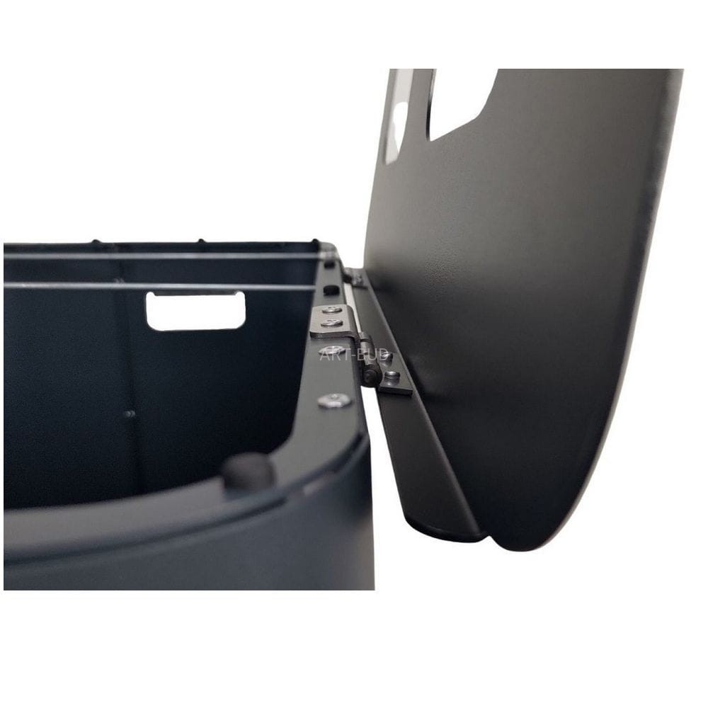 To co wyróżnia kosze linii Eko Star Station to pokrywa, która połączona jest z korpusem kosza specjalnymi zawiasami motylkowymi. Dzięki nim, użytkownik otwierając kosz, nie musi odkładać pokrywy - po otwarciu, pozostaje ona w pozycji pionowej. W pokrywie kosza umieszczony został również zamek który chroni przed przypadkowym lub niepowołanym otwarciem stacji. Konstrukcja kosza jest nad wyraz solidna - wykonana z ocynkowanej stali grubości 1mm oraz pokryta farbą proszkową. By ułatwić użytkownikowi kwestie związane z transportem i umiejscowieniem stacji, w jej podstawie zastosowano kółka jezdne. Zarówno lewy, jak i prawy bok kosza posiada otwory służące jako uchwyty, by również ułatwić jej przenoszenie.