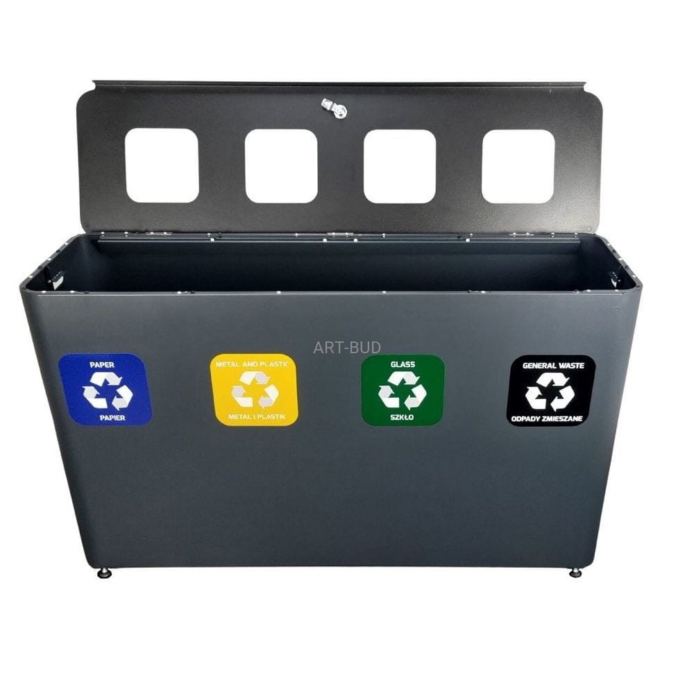 | Kod producenta: 138 Kolor - SZARY RAL 7016 Pojemność - 4x60 L Szerokość - 120.00 cm Wysokość - 70.50 cm Głębokość - 35.50 cm Waga - 29,00 kg |