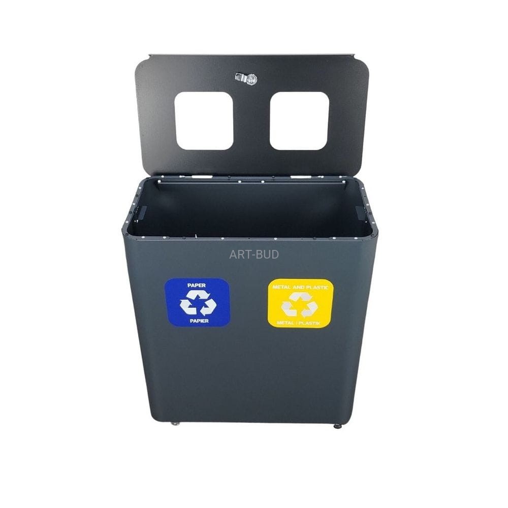 | Kolor - SZARY RAL 7016 Pojemność - 2x60 L Szerokość - 64,50 cm Wysokość - 70.50 cm Głębokość - 35.50 cm Waga - 18,00 kg |