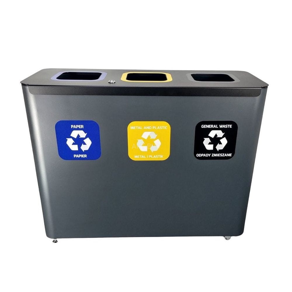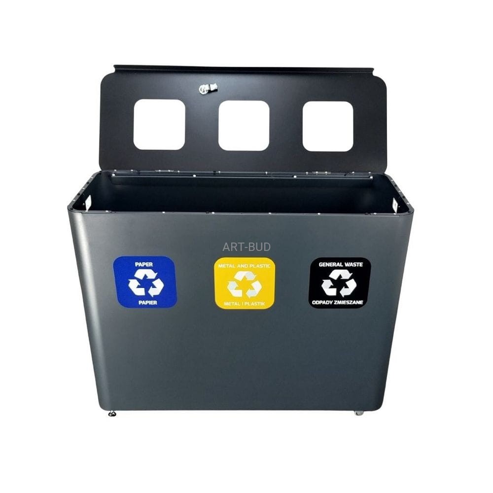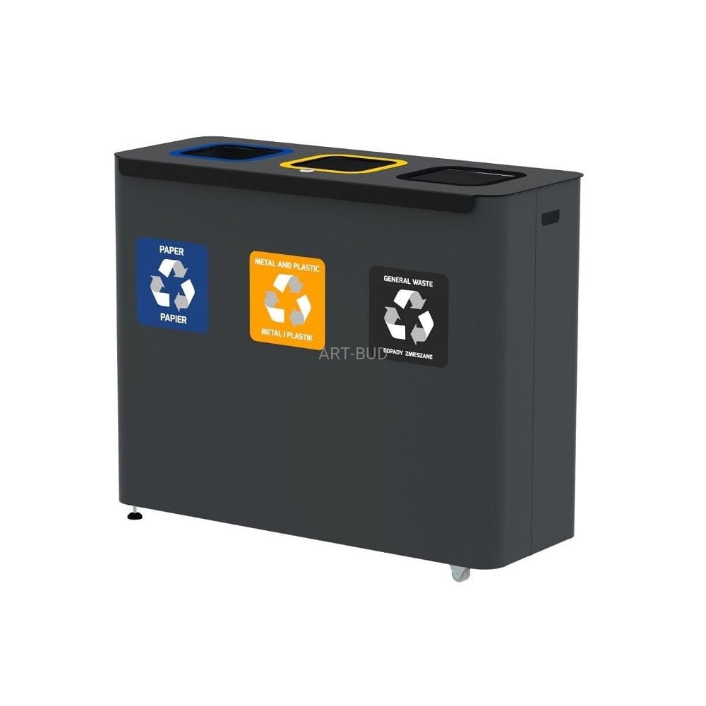 | Kolor - SZARY RAL 7016 Pojemność - 3x60 L Szerokość - 93,50 cm Wysokość - 70.50 cm Głębokość - 35.50 cm Waga - 24,00 kg |