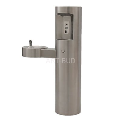 Estetyczny, praktyczny o dużych walorach użytkowych, doskonale dopasowuje się do każdego otoczenia i jest idealnym uzupełnieniem małej architektury. Wykończony powłoką w kolorze stalowym. Dodatkowo zabezpieczony warstwą ochronną, która zapewnia całoroczną ochronę i estetyczny wygląd przy minimalnych wymaganiach konserwacyjnych. Okrągła konstrukcja wykonana z grubej, wytrzymałej stali. Laminarny przepływ ogranicza chlapanie i ułatwia konserwację. Formowana stalowa misa źródełka posiada jednoczęściową wylewkę odporną na intensywne użytkowanie (VR). Samopowrotne przyciski uruchamiające (oddzielny dla dystrybutora i źródełka), umieszczone w widocznym miejscu, są odporne na intensywne użytkowanie i nie wymagają chwytania lub przekręcania. Drzwiczki serwisowe wykonane z grubej blachy stalowej, mocowane na śruby o konstrukcji uniemożliwiającej otwarcie przez osoby niepowołane. Zapewniają dostęp do prostego systemu połączeń hydraulicznych. Urządzenie należy zamontować na gładkiej, płaskiej, wykończonej powierzchni o odpowiedniej nośności. Wysokość (dystrybutor) 1320 mm, szerokość 762 mm. Urządzenie spełnia wymagania dostępu dla osób niepełnosprawnych (ADA).