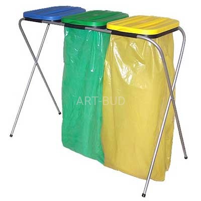 Stojak metalowy na worki potrójny SP-3, plastikowa pokrywa-różne kolory który znakomicie nadają się do segregacji odpadów na zewnątrz budynków oraz wewnątrz większych powierzchni magazynowych (hal).