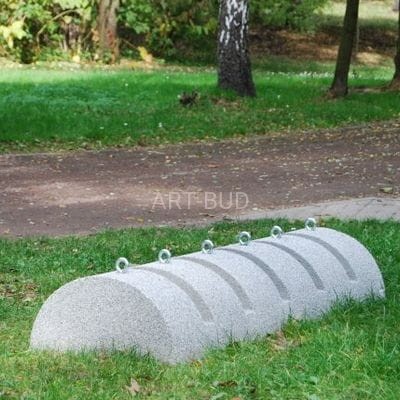 Stojak rowerowy betonowy 5 stanowiskowy kod 171 Ciężki, stabilny stojak rowerowy odporny na uszkodzenia i złe warunki atmosferyczne.