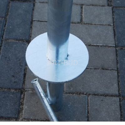 | Wymiary: wysokość - 90 cm wysokość całkowita - 115 cm szerokość - 90 cm Materiał: rura fi 48,3 x 2,6 mm lub 42,4 x 2,9 mm flansza fi 150 x 6 |