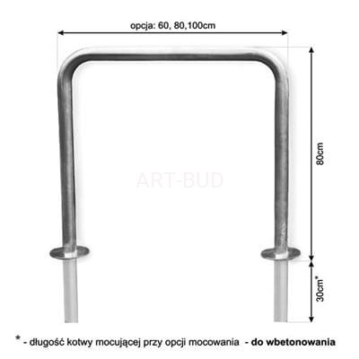 Podana cena dotyczy stojaka opcji podstawowej, ocynkowanej o długości 60 x 80 cm w opcji do przykręcenia lub wbetonowania.