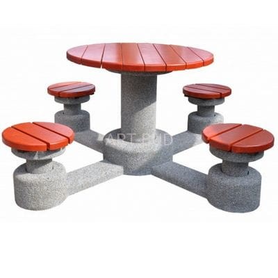 Ciężki stół wykonany z betonu płukanego - gwarantuje stabilność.dlatego montaż na stałe nie jest konieczny.