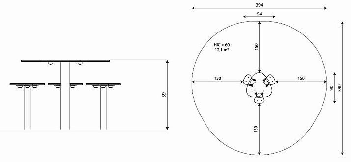 Urządzenie przeznaczone na publiczne place zabaw. Urządzenie posiada certyfikat wystawiony przez jednostkę akredytowaną lub deklarację zgodności. Brak ostrych krawędzi oraz szczelin, które mogłyby umożliwić zakleszczenia: palców, głowy i innych części ciała. Kotwienie na gruncie płaskim, na głębokości 80/70/60cm. Render urządzenia ma charakter poglądowy, a rzeczywisty wygląd urządzenia i jego kolor może się różnić.