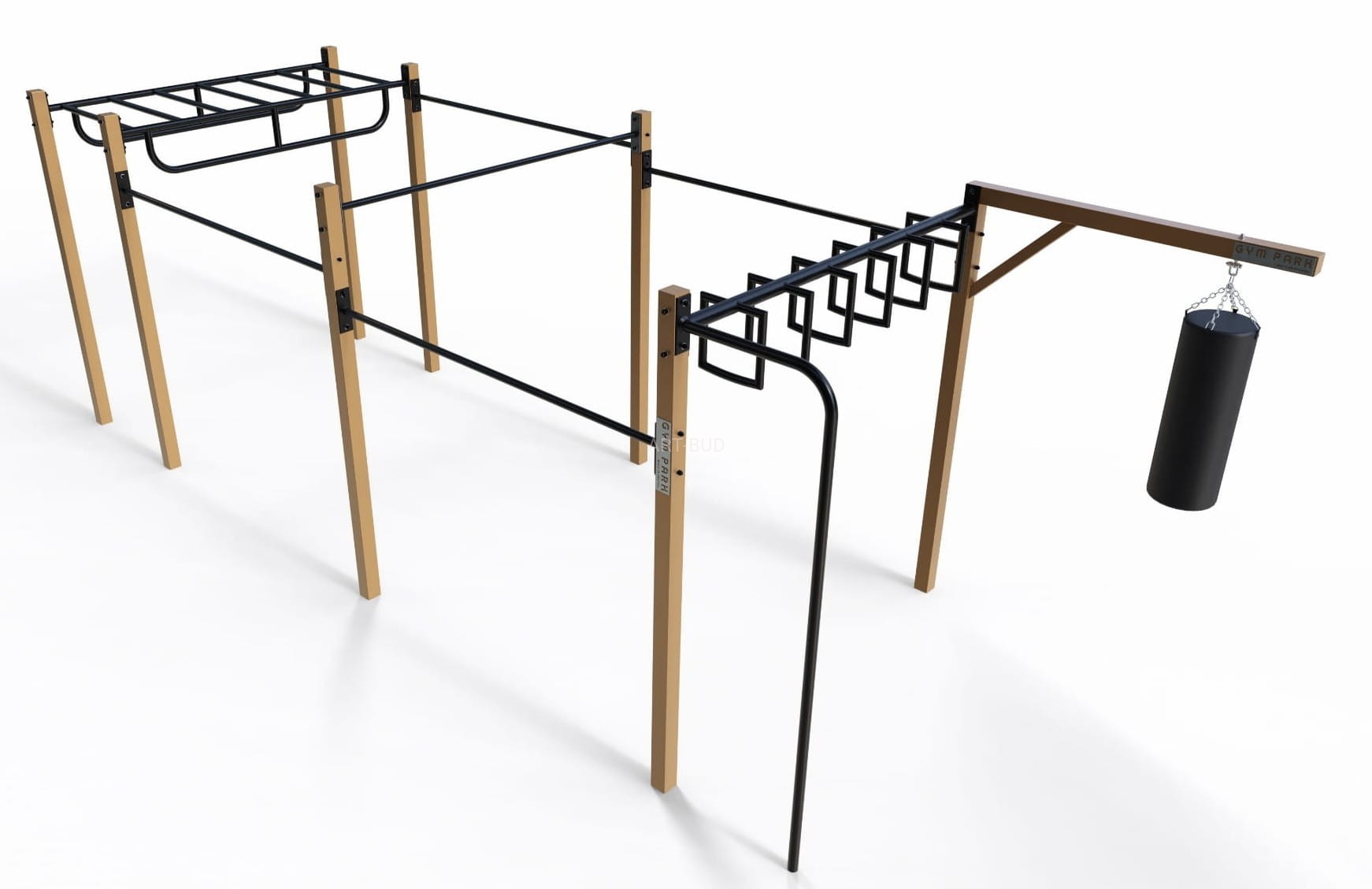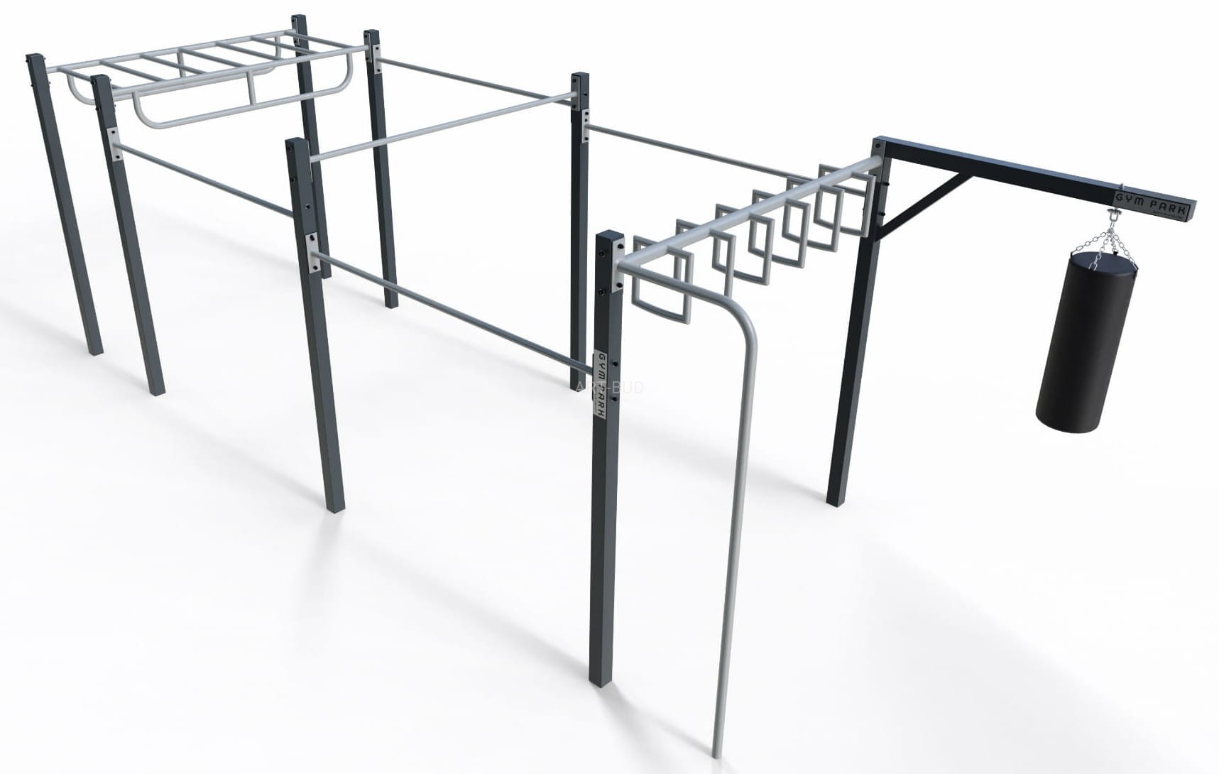 STREET WORKOUT zestaw SWZ-12 to wszechstronny sprzęt do treningu siłowego, kalistenicznego i bokserskiego. Składa się z drążków szerokich, drążka z uchwytami, rury pionowej, drabinki poziomej oraz worka bokserskiego. Umożliwia kompleksowy rozwój siły, wytrzymałości i koordynacji, angażując mięśnie górnej i dolnej partii ciała. Dzięki szerokiej funkcjonalności sprawdzi się zarówno w treningu ogólnorozwojowym, jak i w specjalistycznych ćwiczeniach, takich jak podciąganie, pompki na poręczach, trening brzucha czy uderzenia w worek. Idealny dla sportowców, pasjonatów street workoutu i osób dbających o formę.