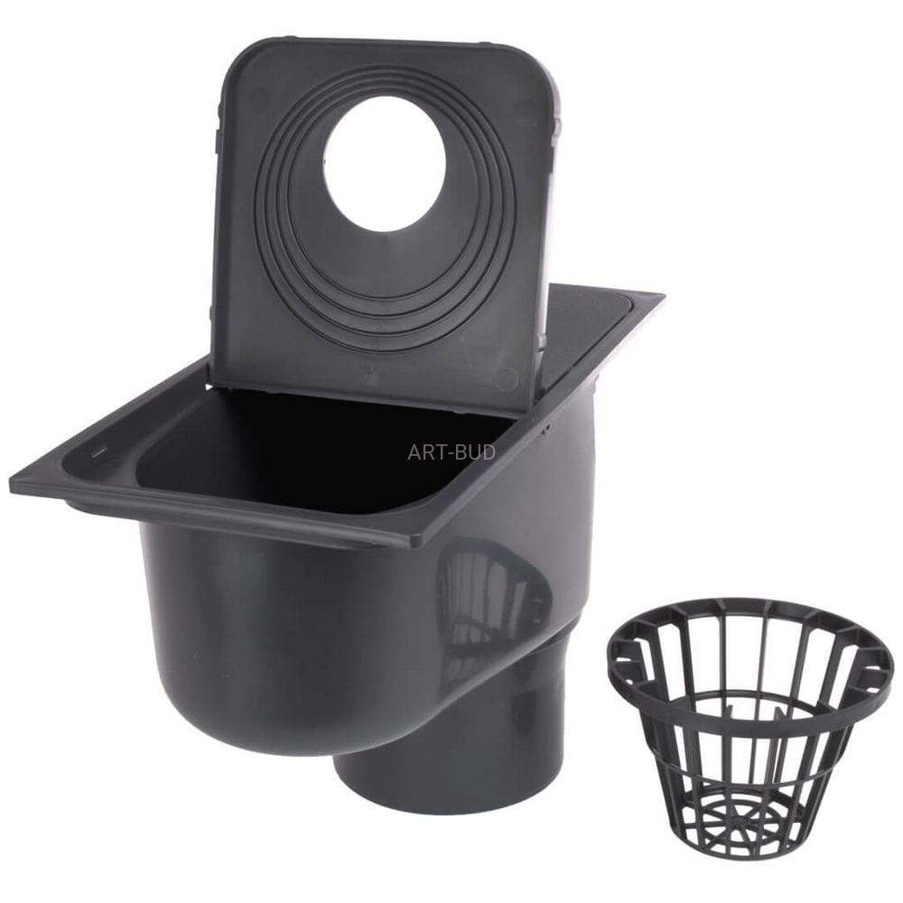 Studzienka rynny z wyjściem dolnym Ø110, umożliwia odprowadzania wody deszczowej. Uniwersalny otwór wlotowy daje możliwość podłączenia każdego rodzaju rur rynnowych (Ø75,90,100,110mm). W zestawie koszyk zatrzymujący zanieczyszczenia środowiskowe. Otwierana pokrywa umożliwia wyjęcie koszyka oraz czyszczenie studzienki.