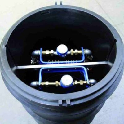 Studzienka wodomierzowa wykonana jest metoda formowania rotacyjnego z polietyleny (PE). Rozmiary studni DN 600 h-1,2 m i średnica 600. Studnia jest zwieńczona izolowaną styropianem pokrywą wykonaną z PE. Dodatkowo pokrywa jest wyposażona w zamki mające na celu zabezpieczenie armatury przed kradzieżą. Ze względu na brak dna studnia nadaję się do montażu w terenie o wysokim poziomie wód gruntowych, i nie następuję wypieranie jej z gruntu.