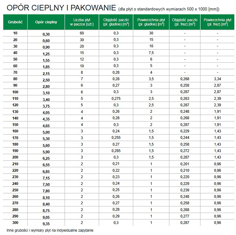 wymiary płyt: 1000 x 500 [mm]
