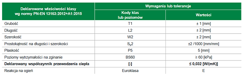 współczynnik przewodzenia ciepła λ≤0,032 [W/(m·K)]