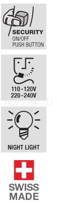 Połączenie elegancji, prostoty i funkcjonalności zadowoli nawet najbardziej wybrednych gości. Wygodny i poręczny uchwyt montowany na ścianie zapewni wygodę korzystania z urządzenia. Wbudowane gniazdo na golarkę o napięciu 110-120V i 220-240V ułatwi korzystanie z dodatkowych urządzeń. Producent kompleksowo zadbał o bezpieczeństwo. Zasilacz jest w całości izolowany. W nośniku ściennym został zamontowany przycisk włączony/wyłączony. Czujka nocna pomoże uniknąć niespodziewanych sytuacji. Suszarka jest bardzo profesjonalna. Tryb pracy w prosty sposób można dostosować do własnych potrzeb. Do dyspozycji mamy 2 tryby wylotu powietrza. Dzięki nim mamy możliwość zarówno szybko wysuszyć włosy, jak i je odpowiednio ułożyć. Temperaturę także można łatwo ustawić dzięki 3-stopniowemu przełącznikowi regulacji temperatury powietrza. Producent pomyślał także o osobach bardzo dbających o swoją fryzurę. Za pomocą pozycji COOL można włączyć wylot zimnego powietrza, dzięki któremu nasze włosy mniej się zniszczą. Łącznie dostępnych jest 5 różnych