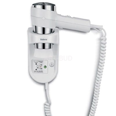 Naścienna suszarka hotelowa z gniazdem na golarkę, w kolorze bieli, elegancki i niezawodny produkt wyprodukowany w Szwajcarii. Połączenie elegancji, prostoty i funkcjonalności zadowoli nawet najbardziej wybrednych gości. Wygodny i poręczny uchwyt montowany na ścianie zapewni wygodę korzystania z urządzenia.