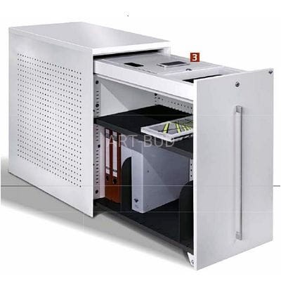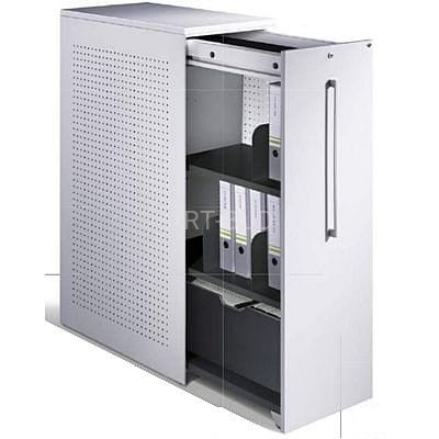 Szafa biurowa ze stalowej blachy z wysuwem bocznym to osobista przestrzeń w biurach wielkopowierzchniowych. Oferowana w dwu wersjach wysokości, dwu i trzy półkowej. Dzięki mechanizmowi wysuwu uzyskujemy dostęp do dużej bazy zgromadzonych dokumentów, nawet nie wstając z miejsca. Atrakcyjny design, funkcja wygrodzenia stanowiska pracy to wszystko gwarantuje szafa biurowa typu Cargo. Masywny stalowy korpus w wersji wysokiej lub niskiej, dopasowanej do wysokości blatu biurka idealnie wkomponuje się do każdego biura.