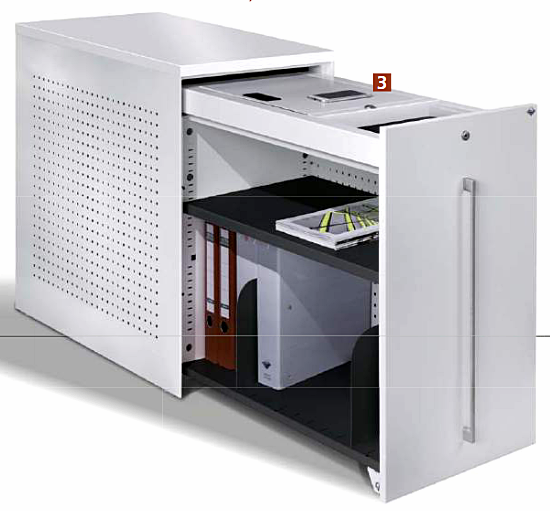 ■W pozycji otwartej umożliwia łatwy dostęp do akt osobowych,a jednocześnie akustyczne i optyczne wygrodzenie stanowiska pracy dla petentów
