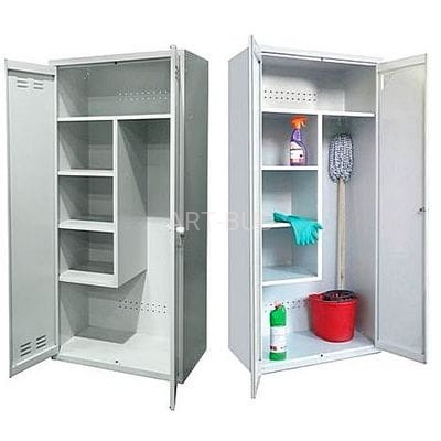 funkcjonalnie podzielona wewnątrz na dwie komory - jedną do przechowywania szczotek, mopów, odzieży ochronnej - drugą z półkami np. na środki czystości