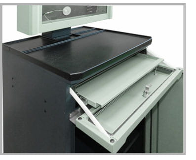 Szafa do komputera z wygodnym pulpitem do prowadzenia notatek. Ochrona komputera i monitora na poziomie IP 32. 23562