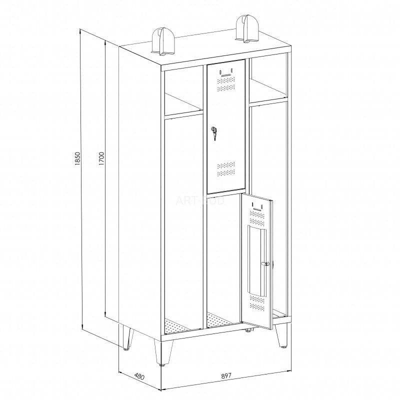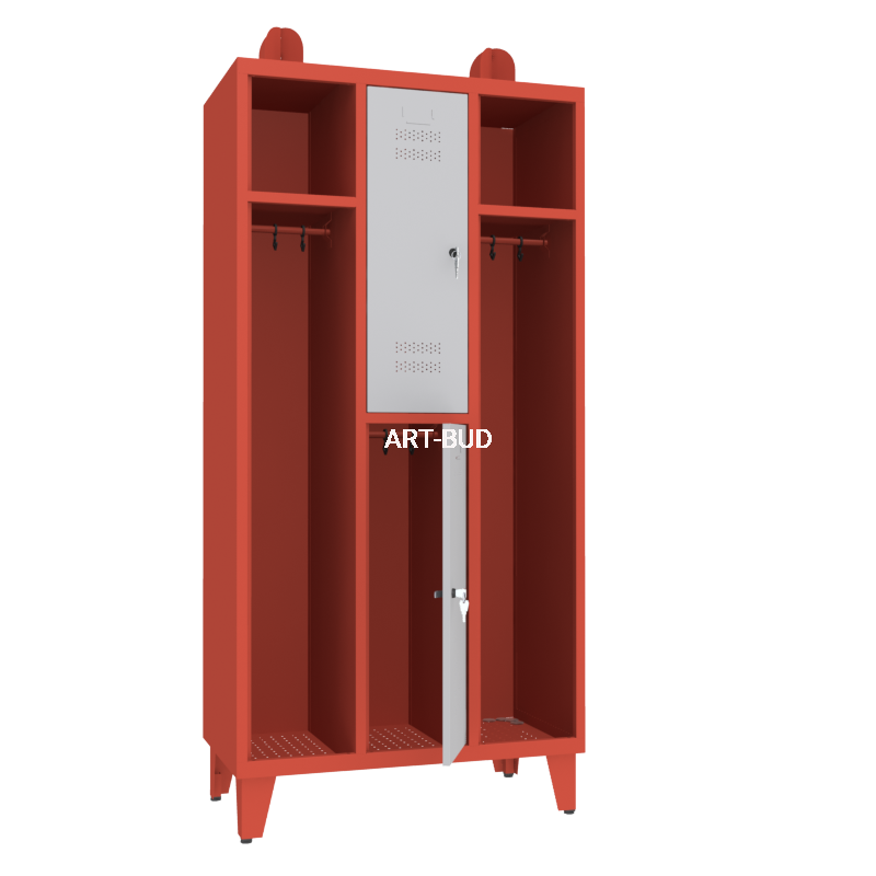 solidna konstrukcja stalowa z wysokiej jakości blachy europejskich producentów, w podłodze otwory odprowadzające wodę, na szafie praktyczny uchwyt na hełm strażacki, nogi o wysokości 150 mm, w każdej komorze drążek i zawieszki na ubrania, łatwość utrzymania czystości dzięki gładkiej, jednolitej powierzchni. Model STRN900 przeznaczony jest dla dwóch użytkowników, każdy z nich ma po jednym pionowym segmencie, oraz pół segmentu jako skrytkę zamykaną kluczykiem.