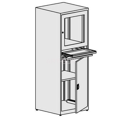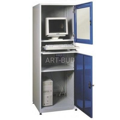 Szafa przemysłowa na komputer z ochroną klawiatury to przemysłowy mebel z oddzielną, przeszkloną szafką na monitor, wysuwaną klawiaturą oraz szafką na jednostkę PC. Nóżki mają możliwość poziomowania, dzięki czemu szafkę skutecznie ustawisz nawet na nierównym podłożu. Na tylnej ścianie znajdują się otwory wentylacyjne zapewniające cyrkulację powietrza. Szafka zmieści monitor o maksymalnej wielkości 17 cali. Zamykana jest zamkiem cylindrycznym z ryglowaniem w trzech punktach, a część na klawiaturę – w jednym punkcie.