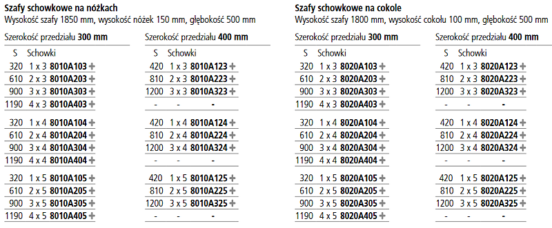 Podana cena podstawowa dotyczy szafy dwu 3x4 symbol 8020A324 12 skrytek o wymiarach wysokość 1800x1200x500 mm z tabelki poniżej. Pozostałe modele na zapytanie.