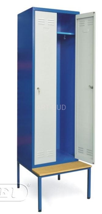 Szafa ubraniowa o szerokości 600 mm z ławką. Charakteryzuje się solidną i stabilną konstrukcją oraz wykonaniem wysokiej jakości.
