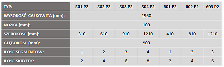 Szafy dostępne są w 2 opcjach i różnych wymiarach.