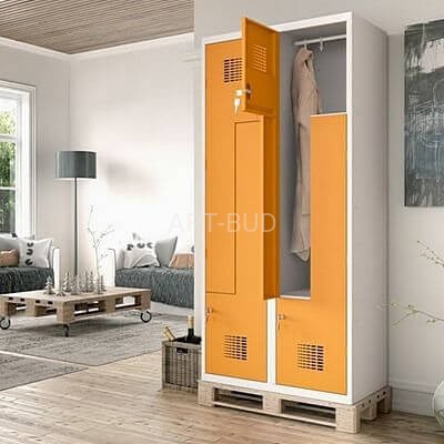 Szafy ubraniowe metalowe SUL 41 z przedziałami w kształcie litery "L" gwarantują funkcjonalność oraz stanowią idealne wyposażenie pomieszczeń socjalnych w zakładach pracy, salach sportowych, klubach fitness lub na basenach. Dzięki szafom ubraniowym metalowym SUL 41 możemy na tej samej powierzchni pomieścić dwa razy więcej komór ubraniowych niż w przypadku standardowych szaf. Tego typu szafka ubraniowa metalowa pozwala na maksymalne wykorzystanie dostępnej przestrzeni, co jest szczególnie ważne w miejscach o ograniczonej powierzchni.